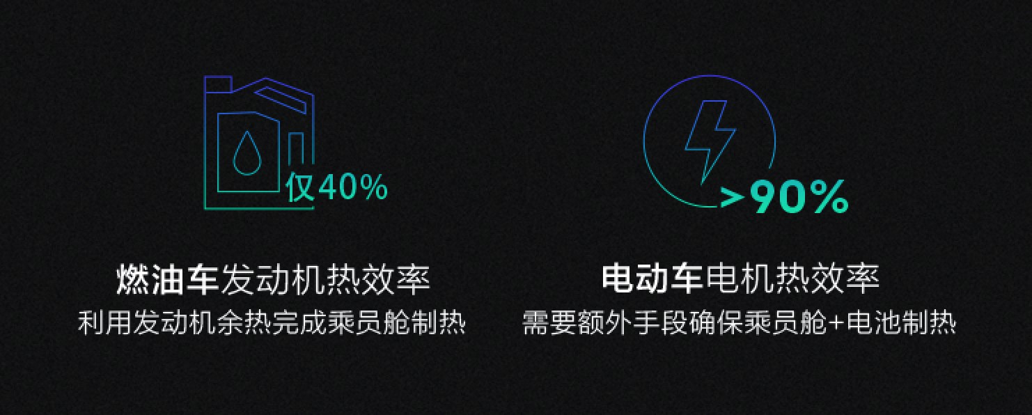 相比常见电动车仅使用电阻丝(PTC)制热
